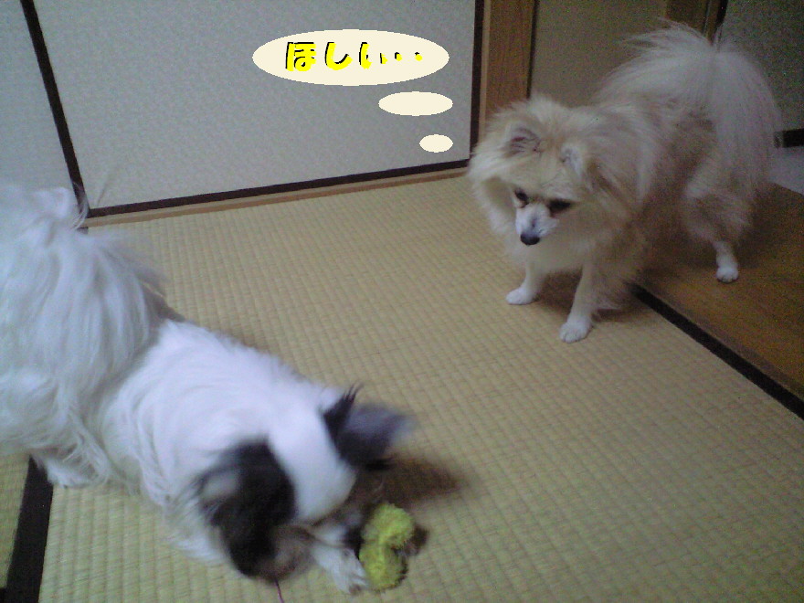 帰って買ってきた物を撮影していると、ジョンもパピもおやつが貰えると思い大はじゃぎ(^^;)
