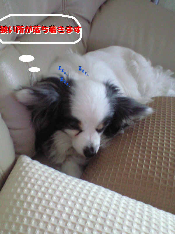 パピは庭でトイレも済まし、飽きたのかソファーで寝始めました。