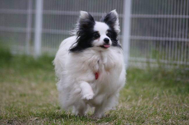 まだまだパピーのあどけなさが残ってます。コートが伸びてきて、ちょっとパピヨンぽい?